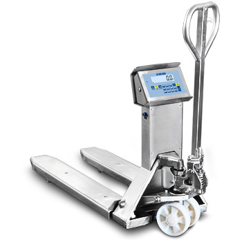 High performance stainless steel pallet truck scales with built-in multirange electronic weighing. The four IP68 stainless steel load cell weight detection guarantees the best accuracy in all work conditions. Reliable and suitable for one who needs to weigh accurately any type of product on a pallet. Available also CE-M APPROVED.